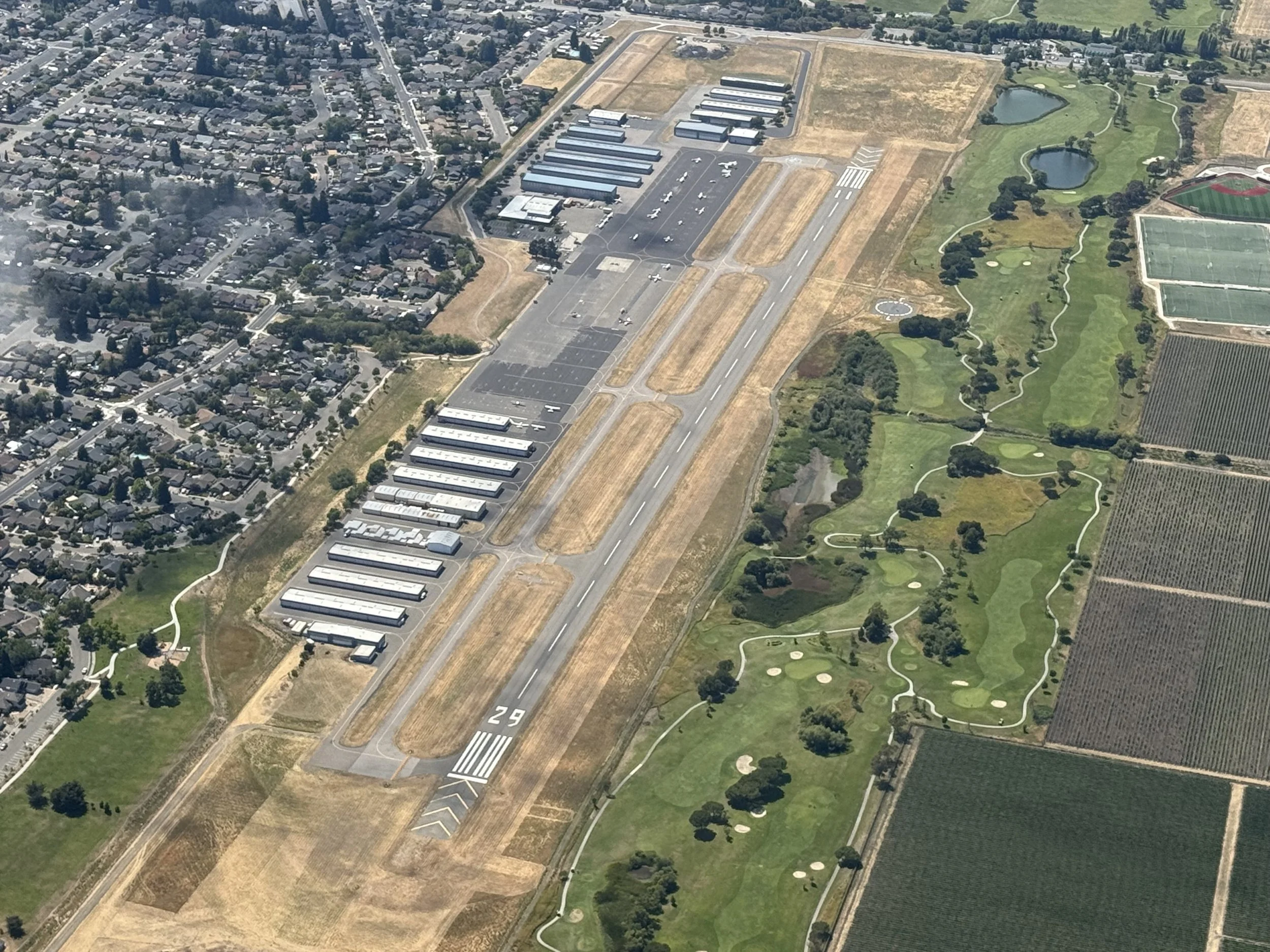 SkyVector aeronautical charts and the map above show how the airport is situated along the northeast edge of the city, adjacent to Sonoma Mountain.